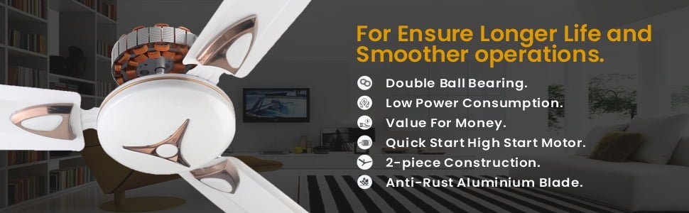 Heavy crc stamping enhances the life of the fan. This fan is also energy-efficient, using less energy to move the same amount of air as a normal ceiling fan. High-flow technology ceiling fans are ideal for larger spaces such as living rooms, and bedrooms.