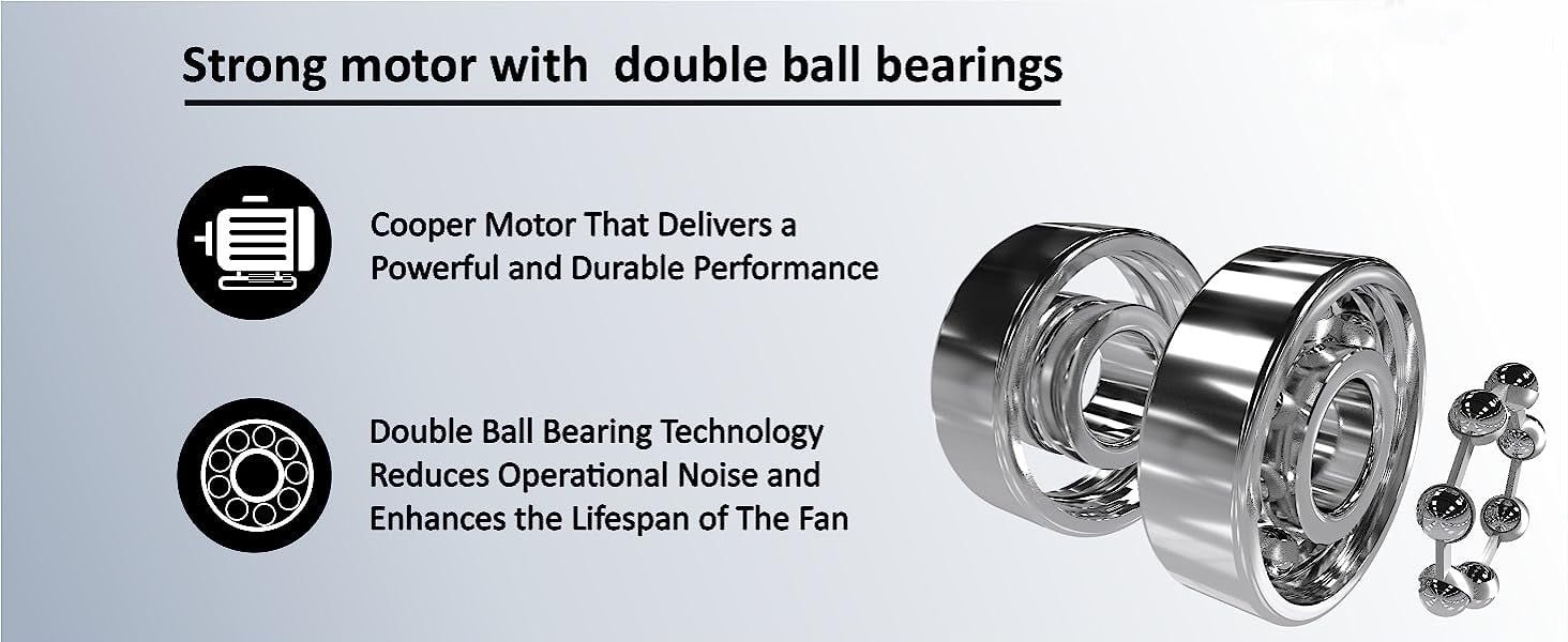 The powerful motor comes with a double ball bearing which makes sure that the fan runs smoothly without making much noise. The two ball bearings help to improve the fan’s stability, reduce friction and increase the lifespan of the fan.