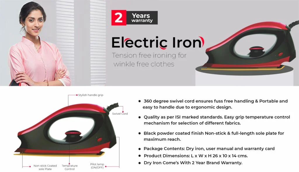 - Dry Iron Comes with 2 Year Brand Warranty.